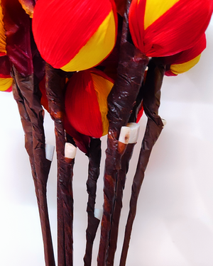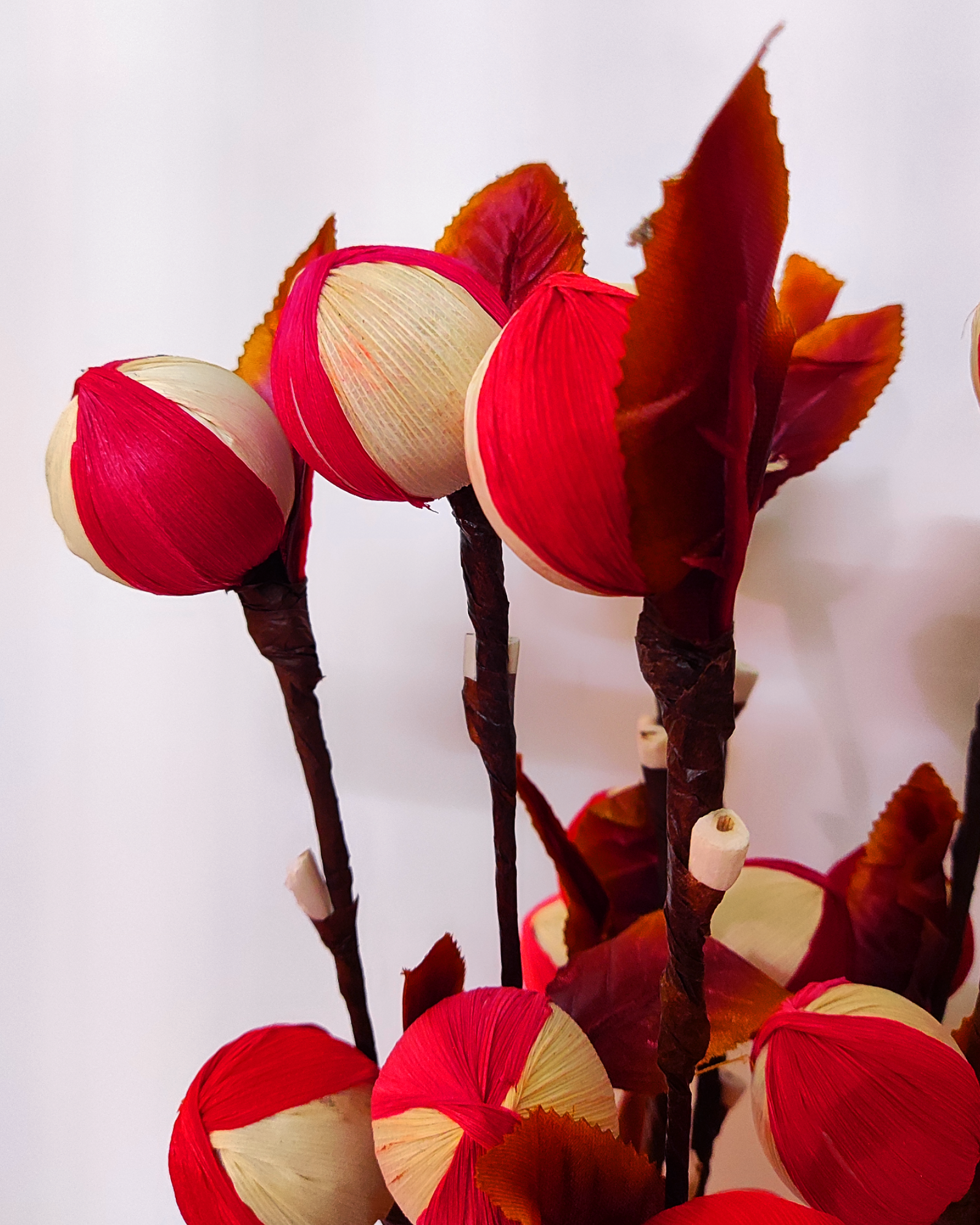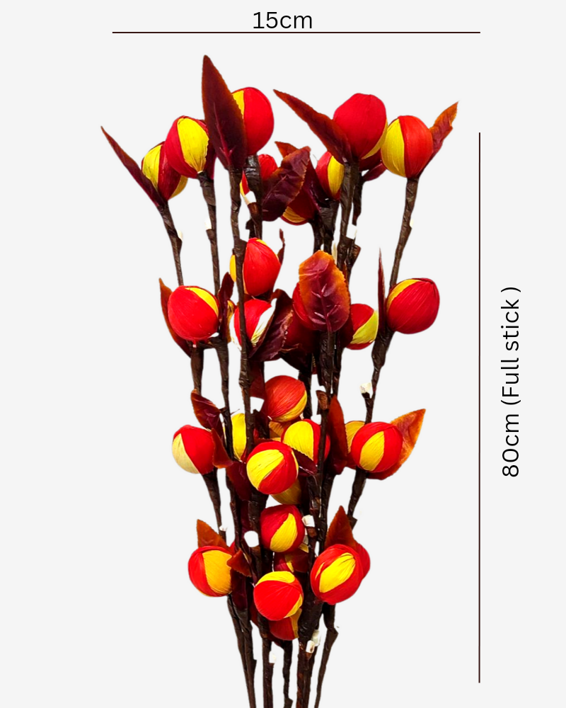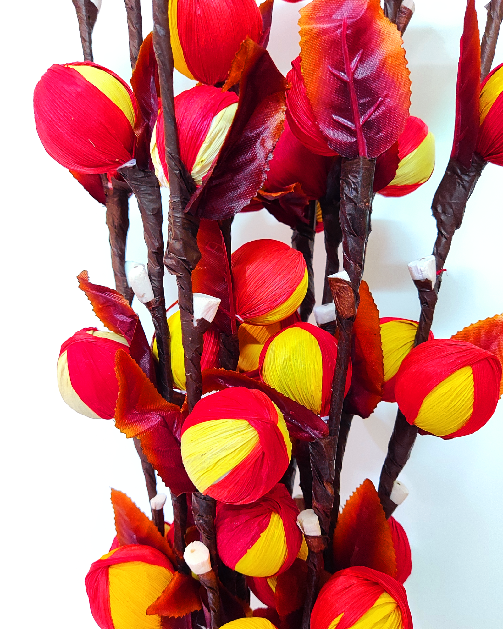 Decorative Corn Ball with Stick, the perfect addition to your home decor or special event. These handmade corn balls come in three beautiful colors: natural, red, and yellow, adding a touch of rustic charm to any setting.