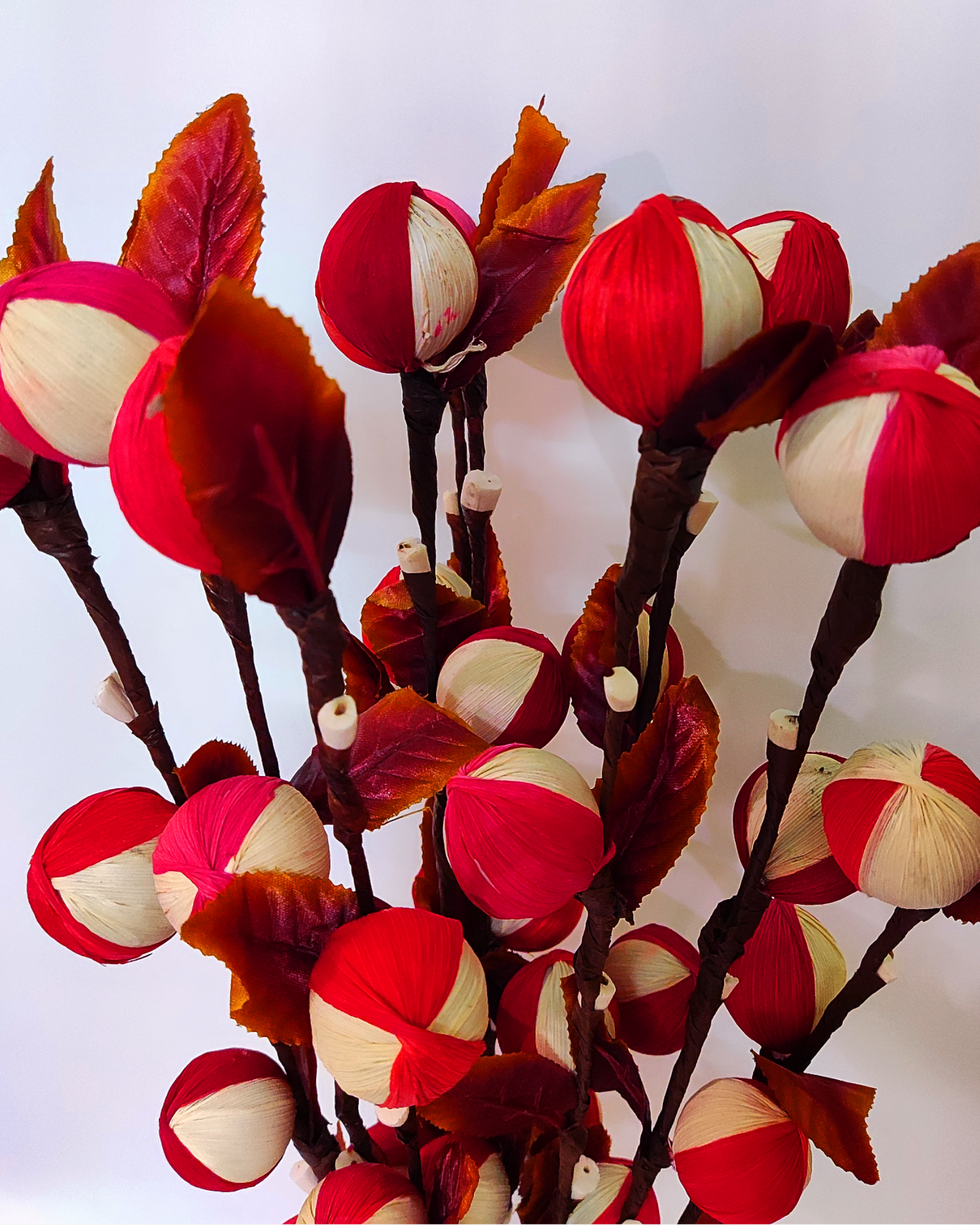 With their natural, red, and yellow hues, these corn balls are versatile and can complement a wide range of color schemes and decor styles. Incorporate them into your home decor for a cozy and inviting feel, or use them to add a pop of color to your wedding or special event.