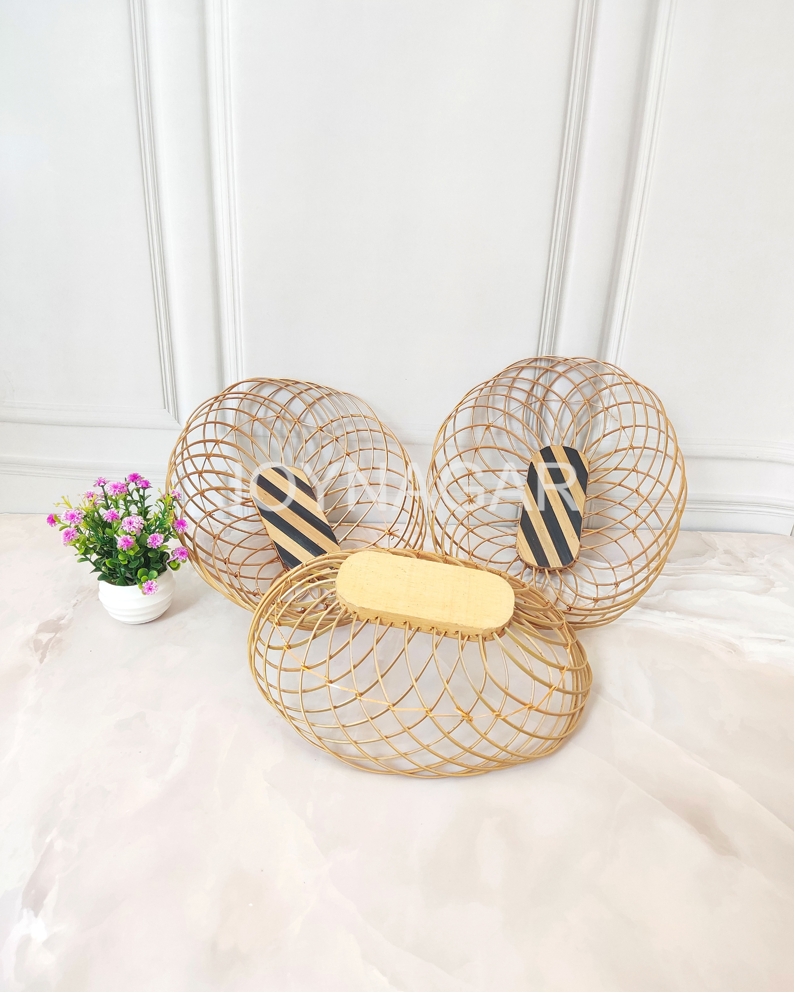 Handmade Bamboo Stick Basket Oval Natural Color 6Pcs