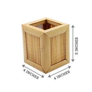 Handmade Bamboo Rectangular Pen Stand Natural Color 2 pcs