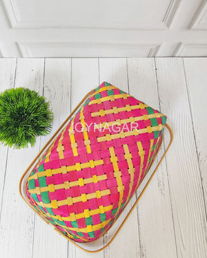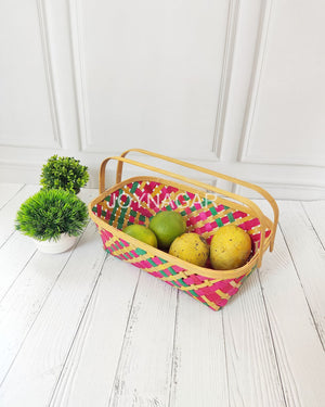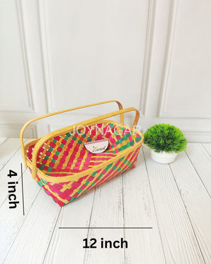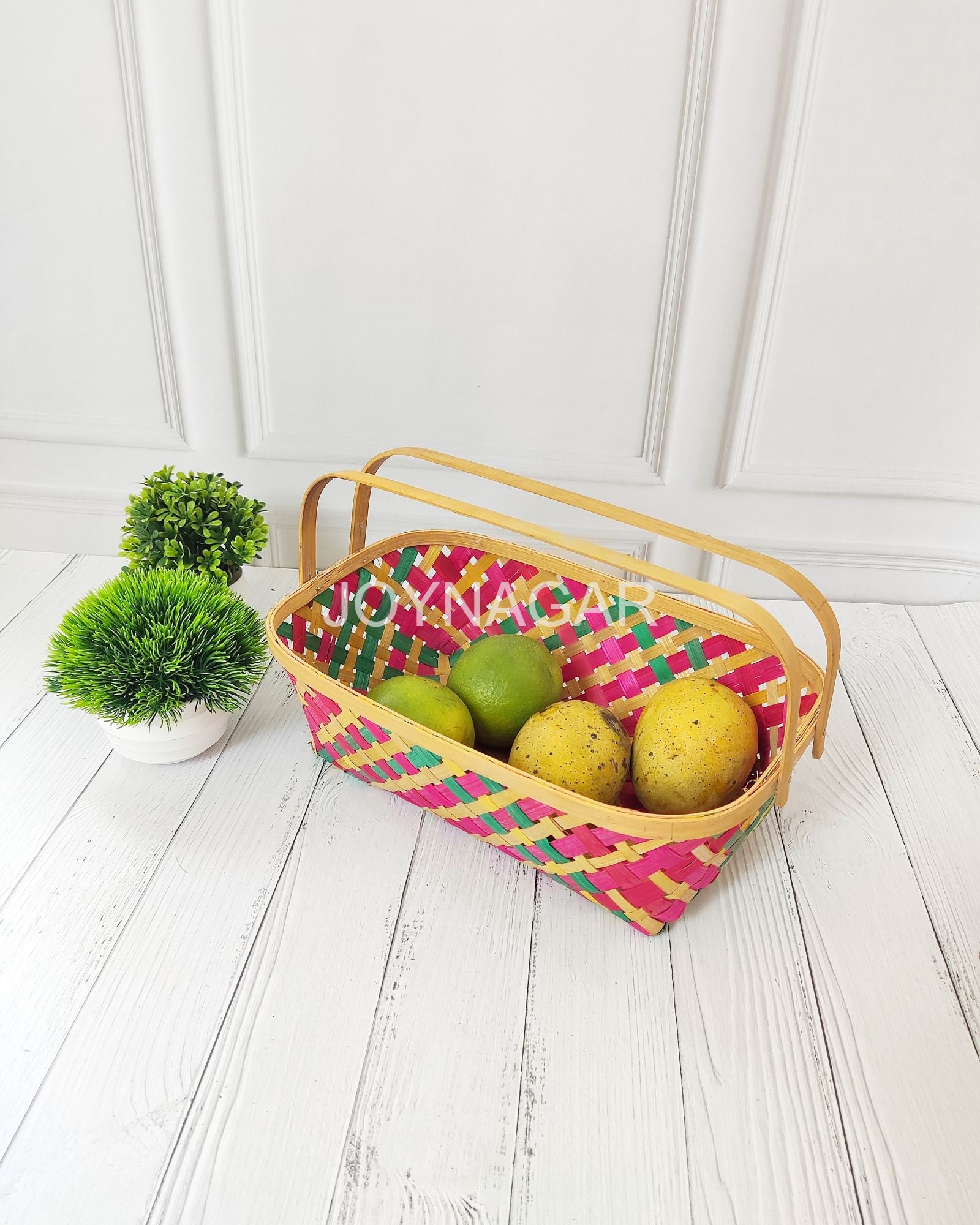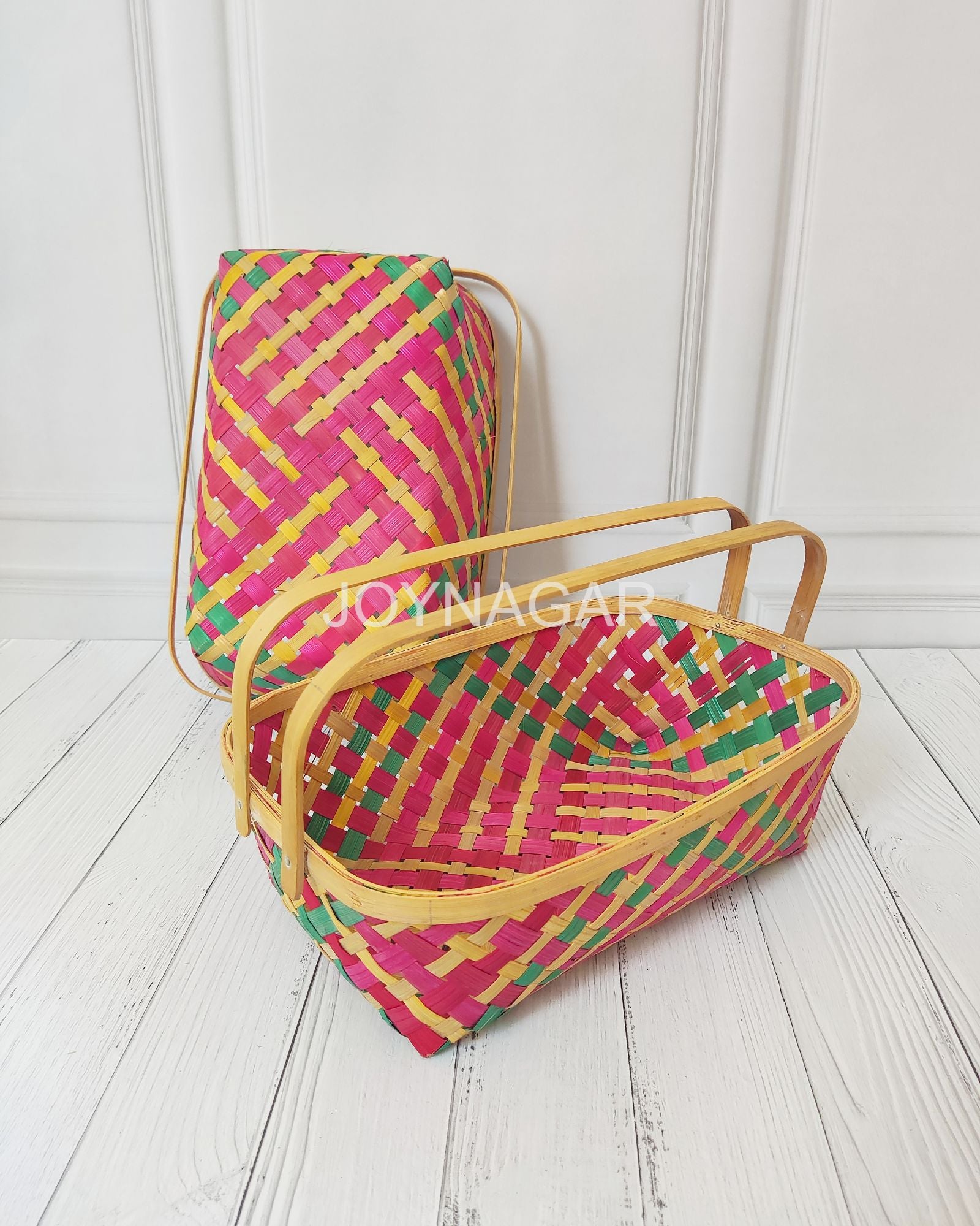 Handmade Natural Bamboo Tokri Basket with Dubble Handle for gift hamper. Colorful and Eco-friendly. Usually use as Gift Hamper, Flower Basket, Fruits Storage etc. Long lasting and fancy artistic design.