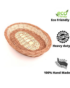 This basket is made of willow which comes from Kashmir and Shrinagar.It is a durable and handwoven product.This willow basket is oval in shape and sturdy.