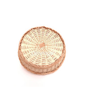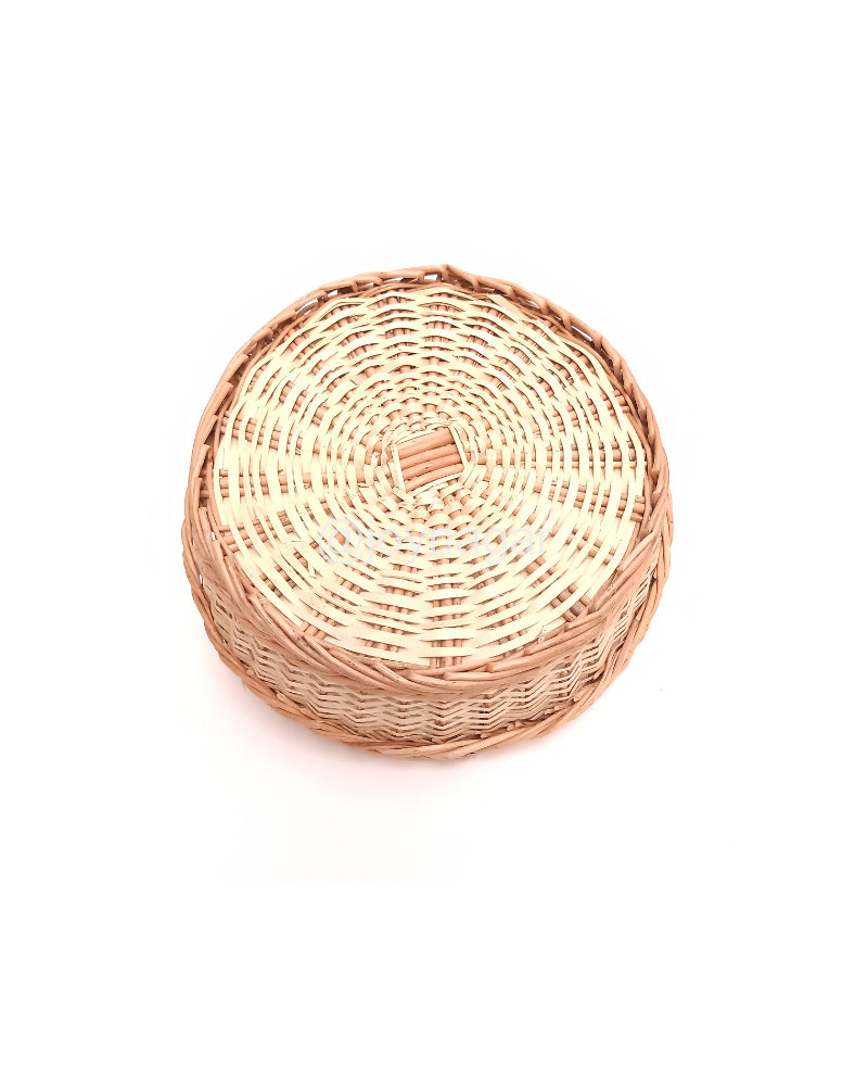 Willow Heavy Duty Desiner Collar Round Basket. It made with bush trees, and comes from Kashmir specially Srinagar. It contains beautiful handicraft work.
