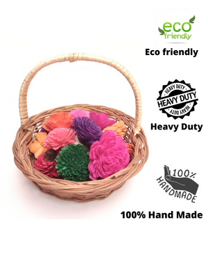 It is ecofriendly handmade products with willow material. Easy to clean. It has a natural colour and round shape. It is a beautiful handicraft item for organizing your home.
