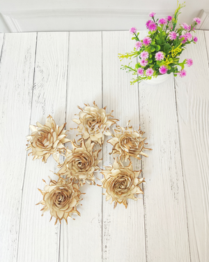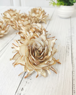 Sola wood flowers are made up of Sola plant, and that they are very soft and pliable. Each individual sola flower is handmade, so no two will look precisely the same. The natural color is ivory, but they're very easy to dye. Wood flowers are great for weddings, home décor, and DIY. you'll simply apply a wire stem to the rear of a sola flower, and make a gorgeous wooden wedding bouquet.