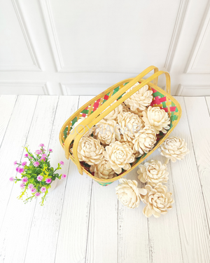 Sola wood flowers are made up of Shola plant, and that they are very soft and pliable. Each individual sola flower is handmade, so no two will look precisely the same. The natural color is ivory, but they're very easy to dye. Wood flowers are great for weddings, home décor, and DIY. you'll simply apply a wire stem to the rear of a sola flower, and make a gorgeous wooden wedding bouquet.