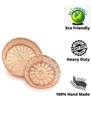 Willow Heavy Duty Desiner Collar Round Basket. It made with bush trees, and comes from Kashmir specially Srinagar. It contains beautiful handicraft work.